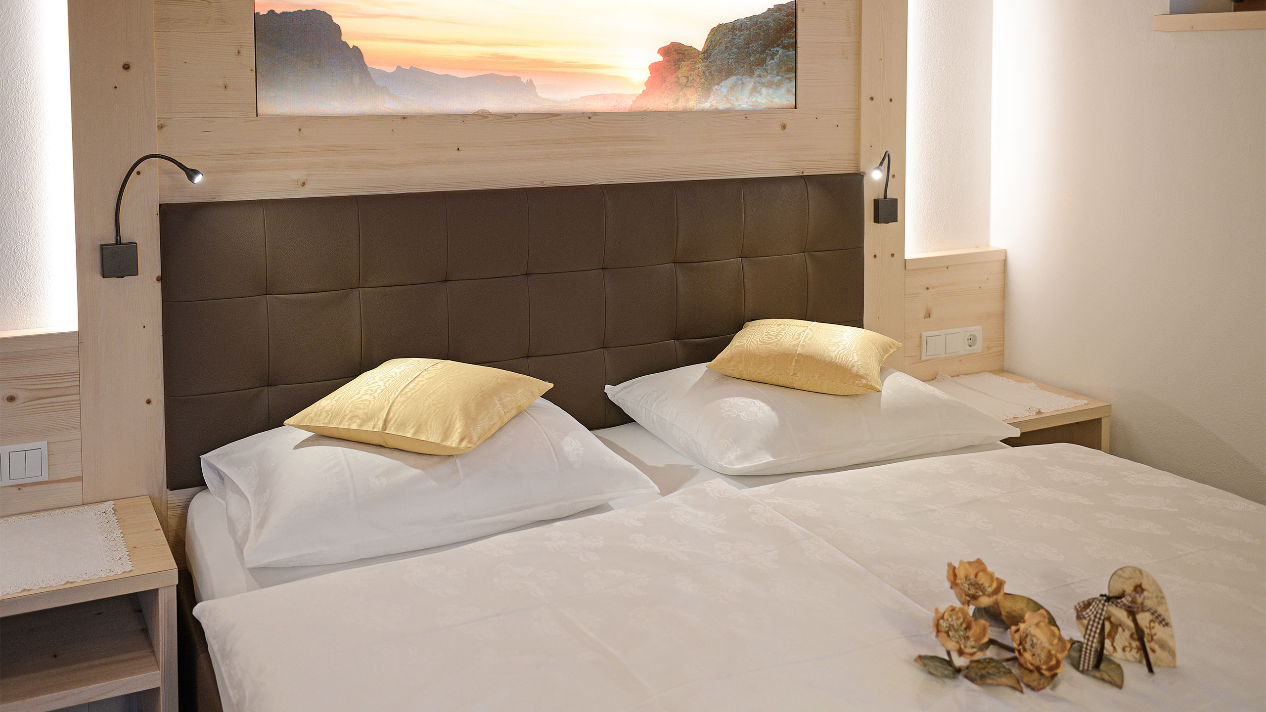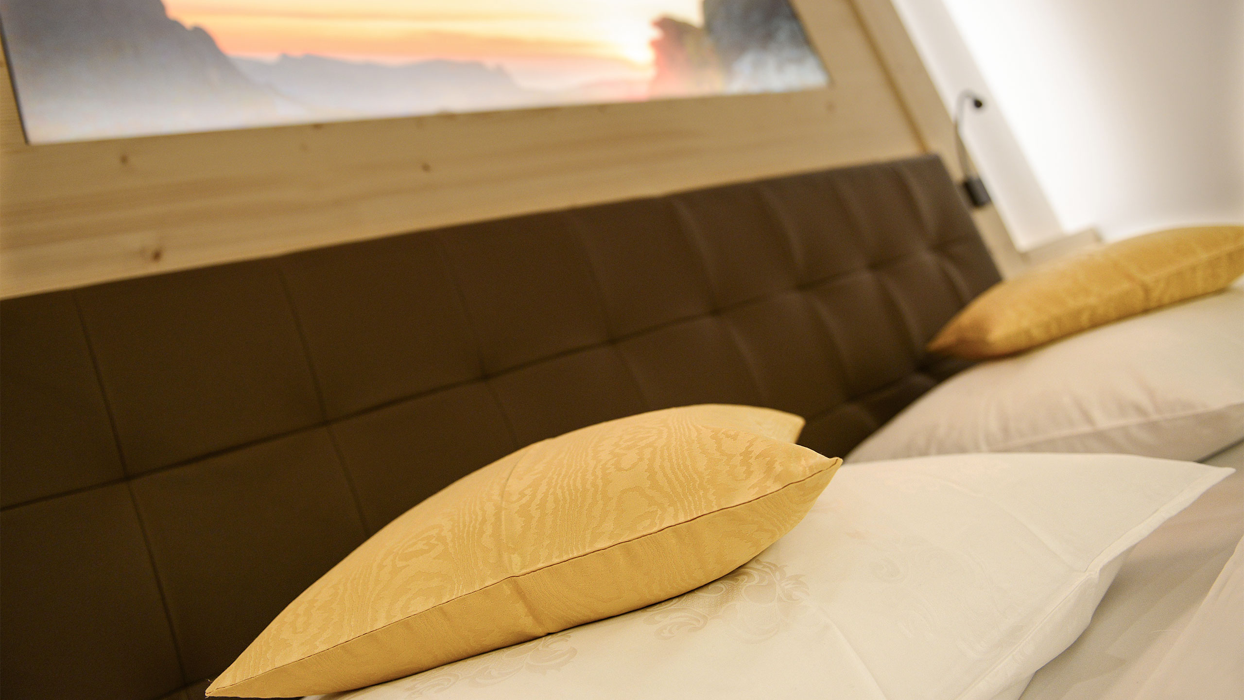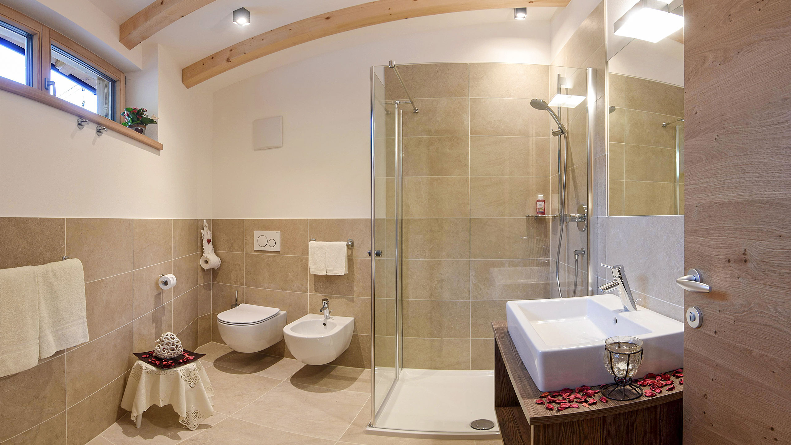 Crafted from real spruce wood, the Cir apartment blends alpine charm with modern comfort. Two spacious double bedrooms, each with a bright and beautiful bathroom, one with a skylight, ensure maximum comfort. The bathrooms include shower, WC, bidet, and hairdryer. A sunny south-facing balcony offers wonderful Dolomite views, while a safe provides extra security.